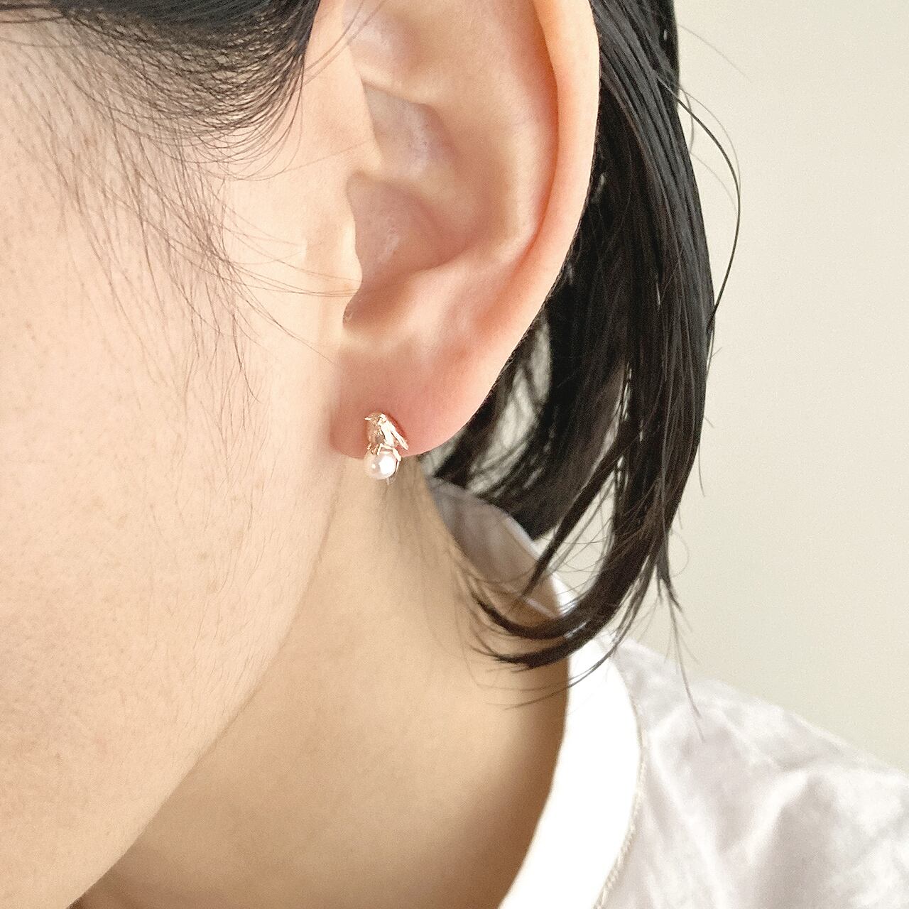 パールを使用した製品です。素材の特性により形や色には個体差がございます。予めご了承ください。水や汗、アルコール消毒液、化粧品、香水、ヘアスプレーなどに長時間接触していると光沢や色合いが損なわれる場合があります。着用後は柔らかい布で表面を拭いていただき高温多湿、直射日光を避けて保管してください。ジュエリー洗浄液を使用する場合はパールに対応した製品かどうか確認してからご使用ください。