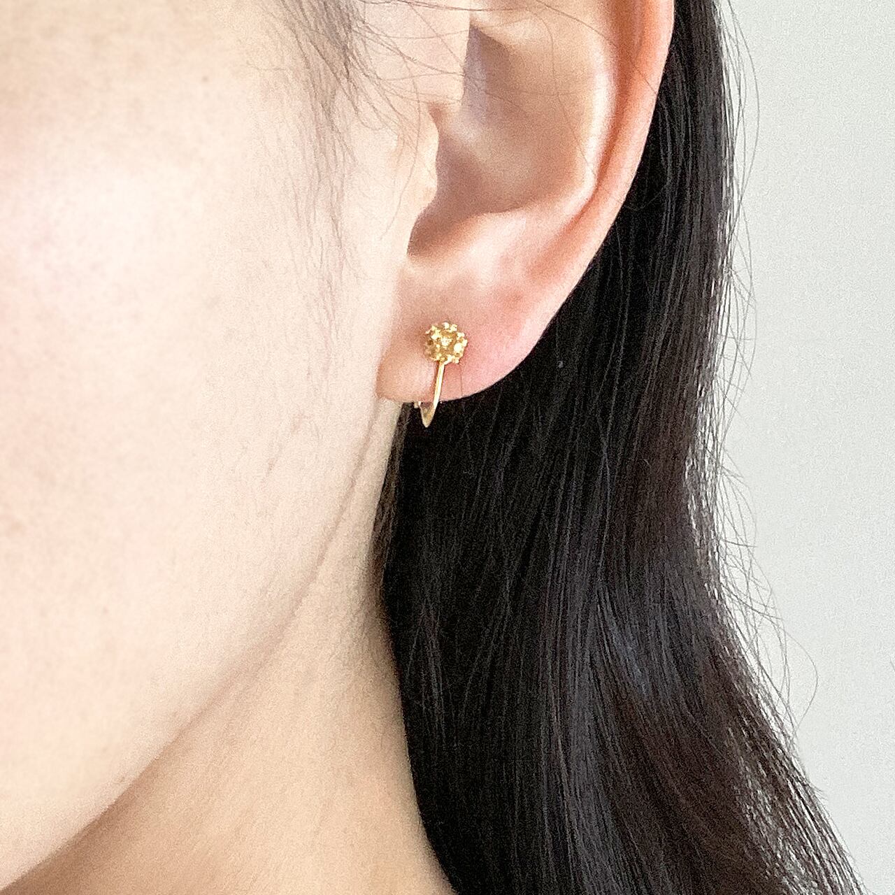 小さな可愛らしい花を一気に咲かせ春が来た喜びと高揚感をくれるモッコウバラを小さなイヤリングにしました。モッコウバラのレモンイエローを思わせる淡いゴールドとツヤを程よく抑えた仕上げになっています。耳たぶに収まるサイズなのでオフィスファッションから日常までお使いいただけます。内部のバネ部分のみ地金の色(銀色)です。ご了承ください。