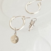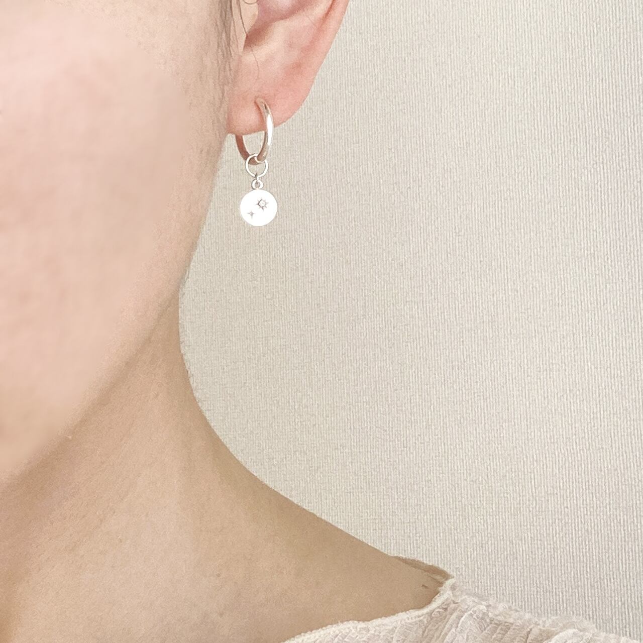 シャープで大人っぽい印象のフープピアスに遊び心ある猫チャームのギャップがお楽しみいただけます。チャームは着脱可能なので外してシンプルなフープピアスとしても利用できデニムなどカジュアルな装いにもマッチします。
